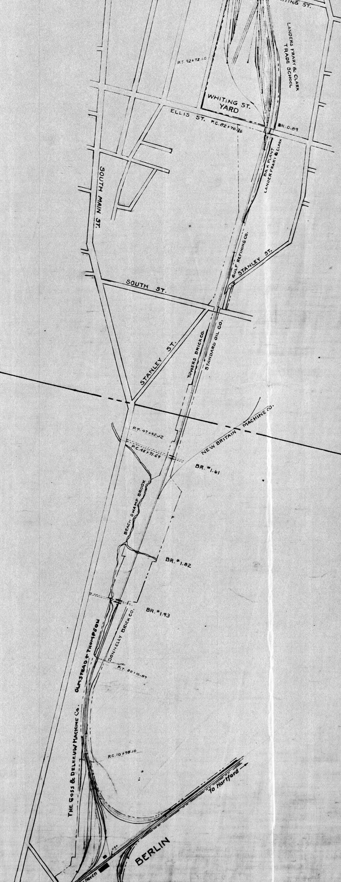It wasn't present when the original NH valuation maps were created, but it is on this 1940 Alignment Map. It's the track on the right just at the Berlin/New Britain border. You can see it's relation to the Berlin Wye to the south, and Whiting St. Yard to the north.
