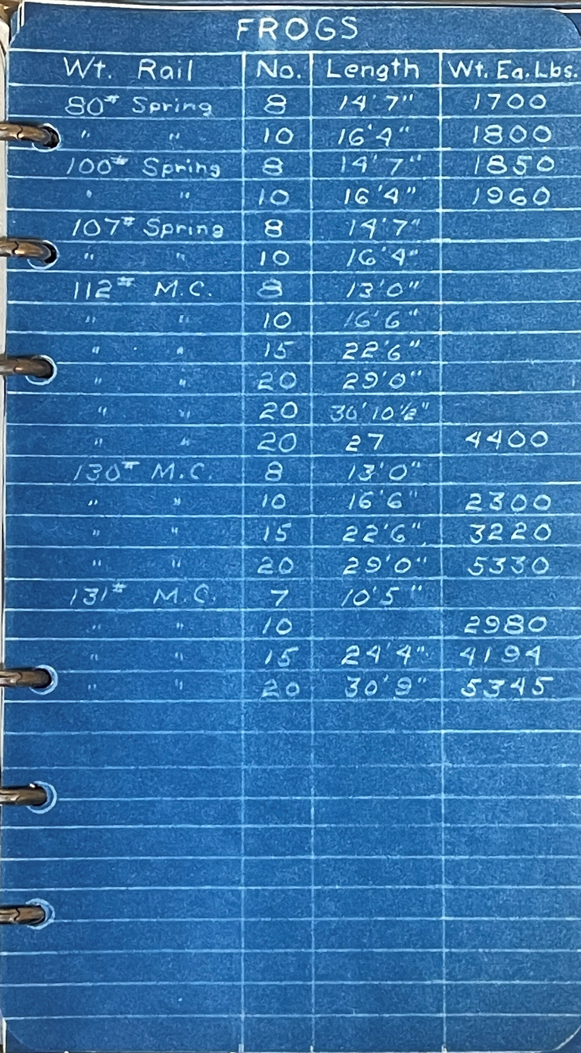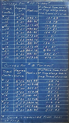 The information noted, 15' foot long switch points for a No. 10 switch, matches the data in the book I have. These are in the order they appear in the book.